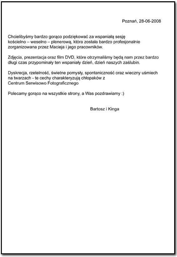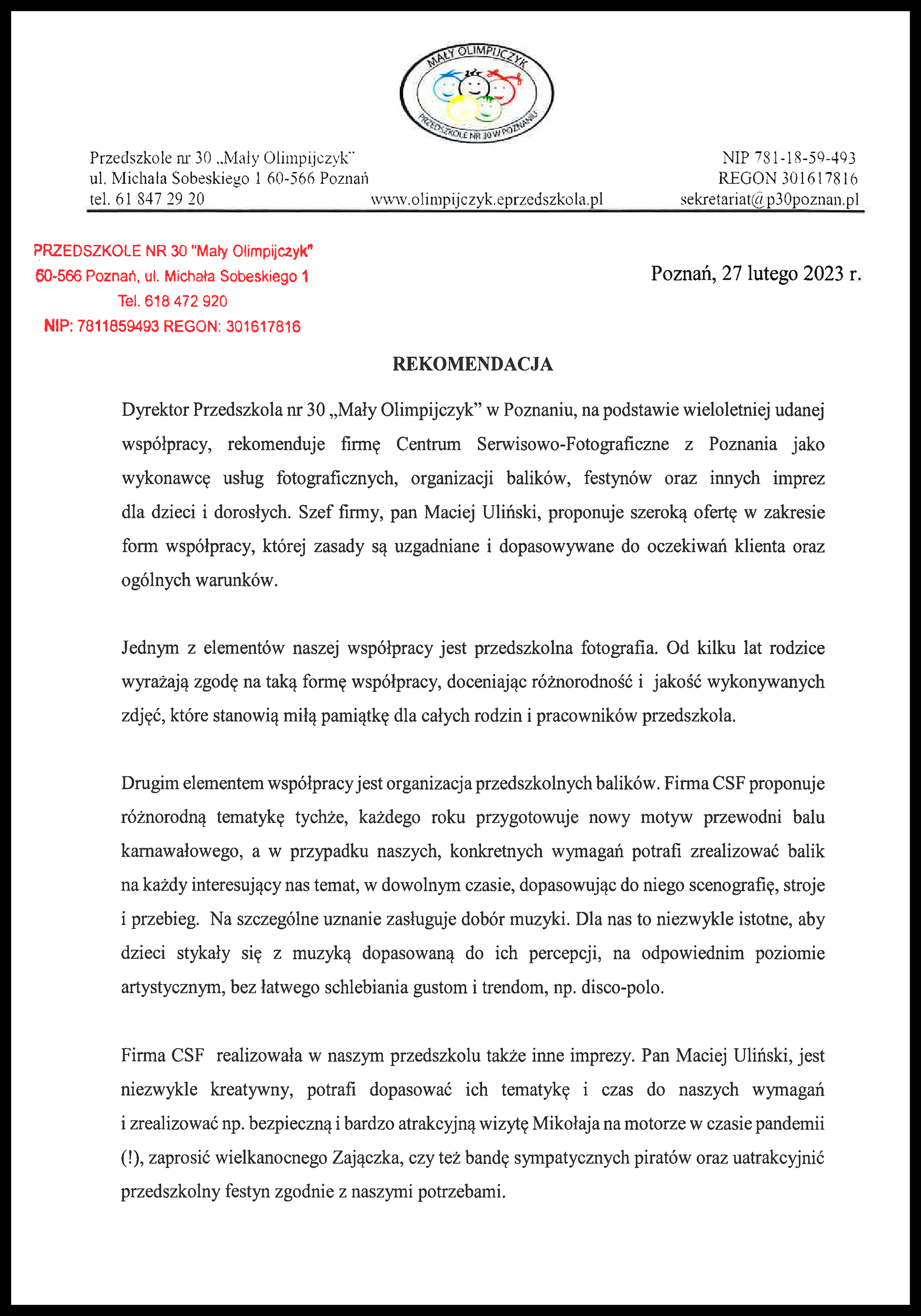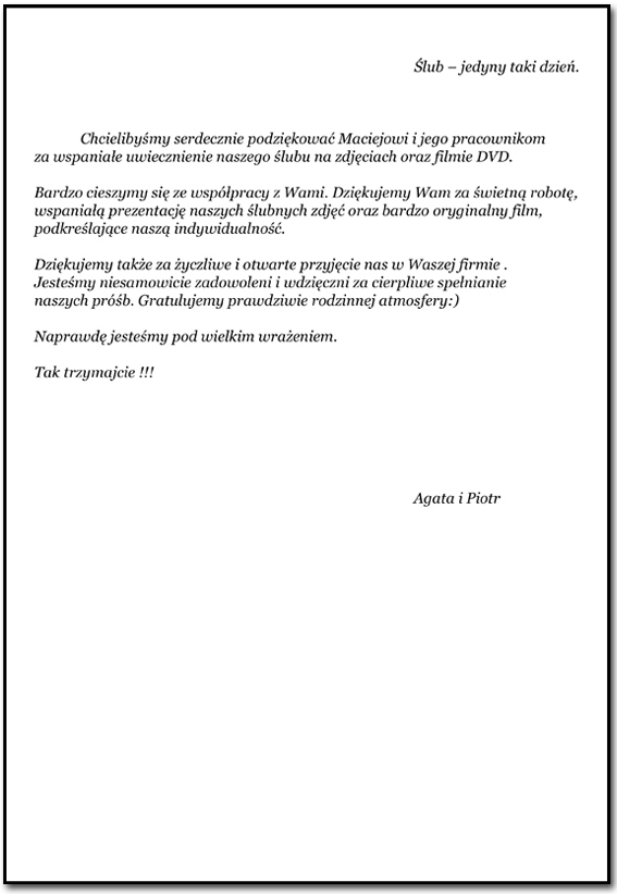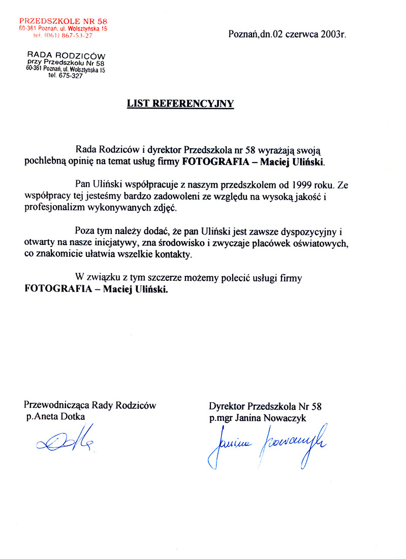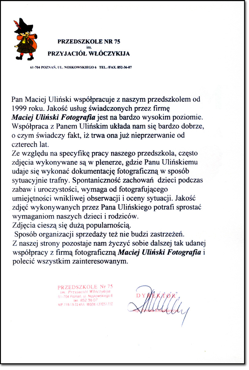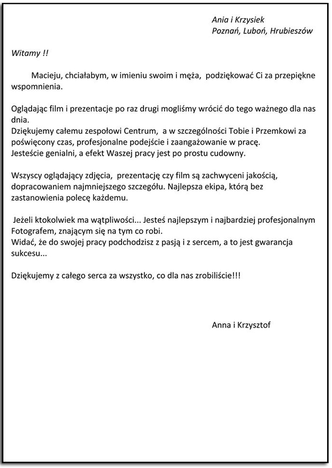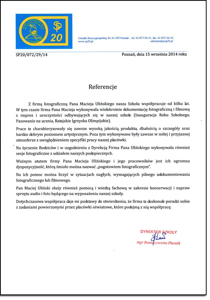 Przedstawiam niektóre referencje wystawione nam przez różne Firmy, Pary Młode i Przedszkola. Zapraszam do zapoznania się z nimi tych z Państwa, którzy chcieli by uwiarygodnić jakość świadczonych przez naszą Firmę usług.