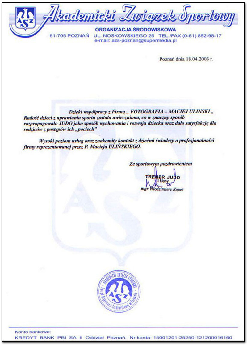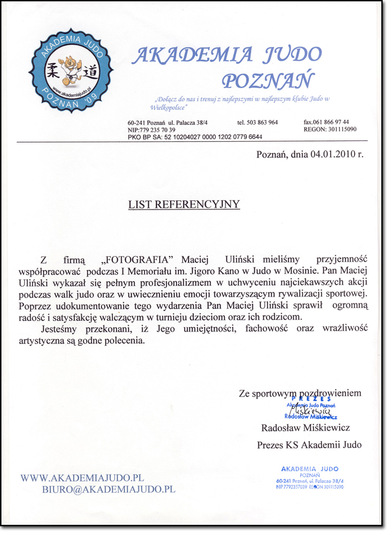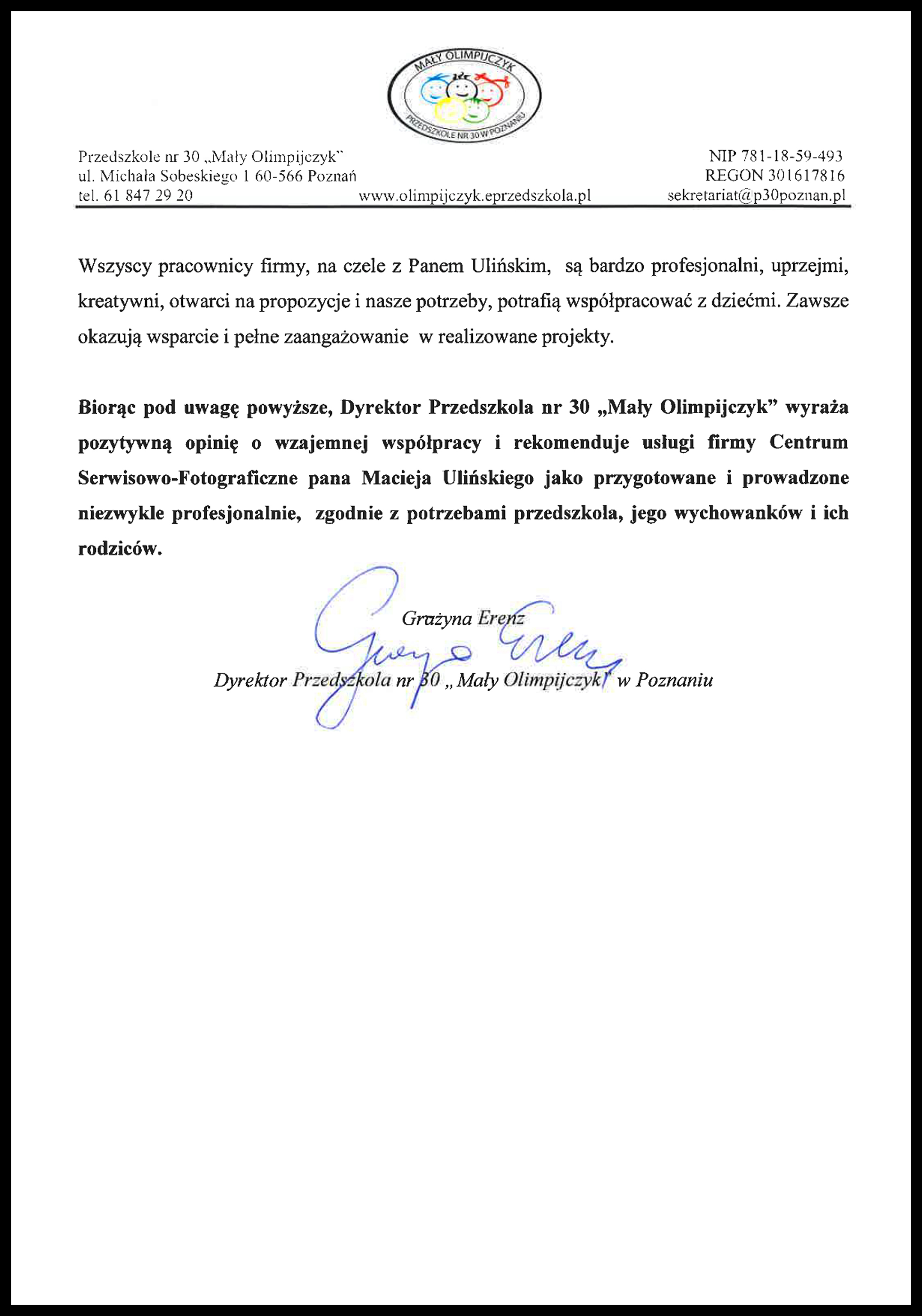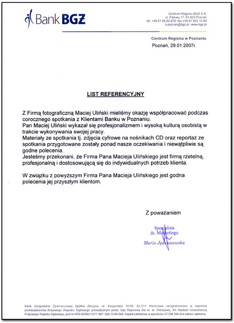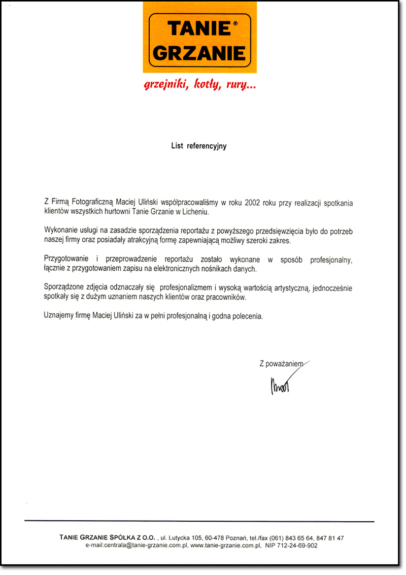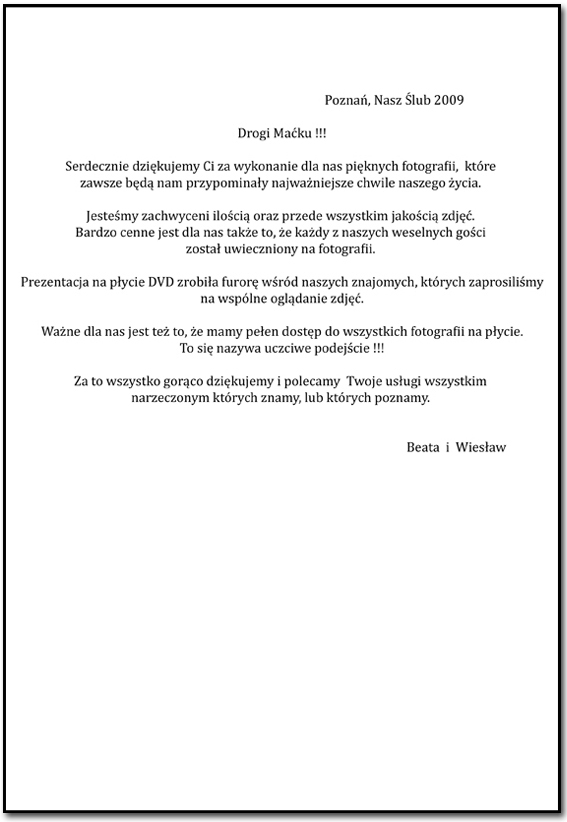Przedstawiam niektóre referencje wystawione nam przez różne Firmy, Pary Młode i Przedszkola. Zapraszam do zapoznania się z nimi tych z Państwa, którzy chcieli by uwiarygodnić jakość świadczonych przez naszą Firmę usług.